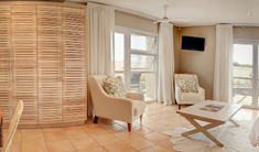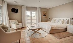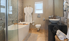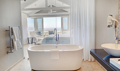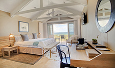 Spacious en suite rooms with balconies offering panoramic views of the surrounding mountains and ocean.